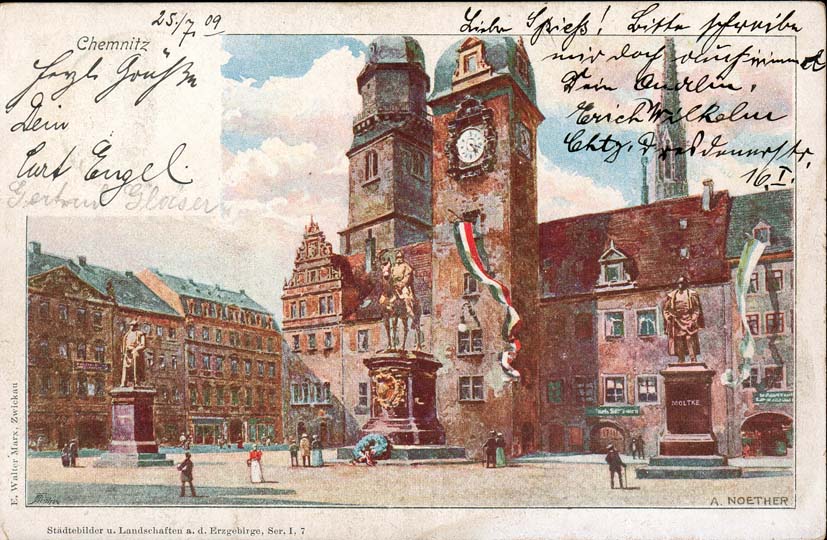 Ansicht des Chemnitzer Marktplatzes am Rathaus
